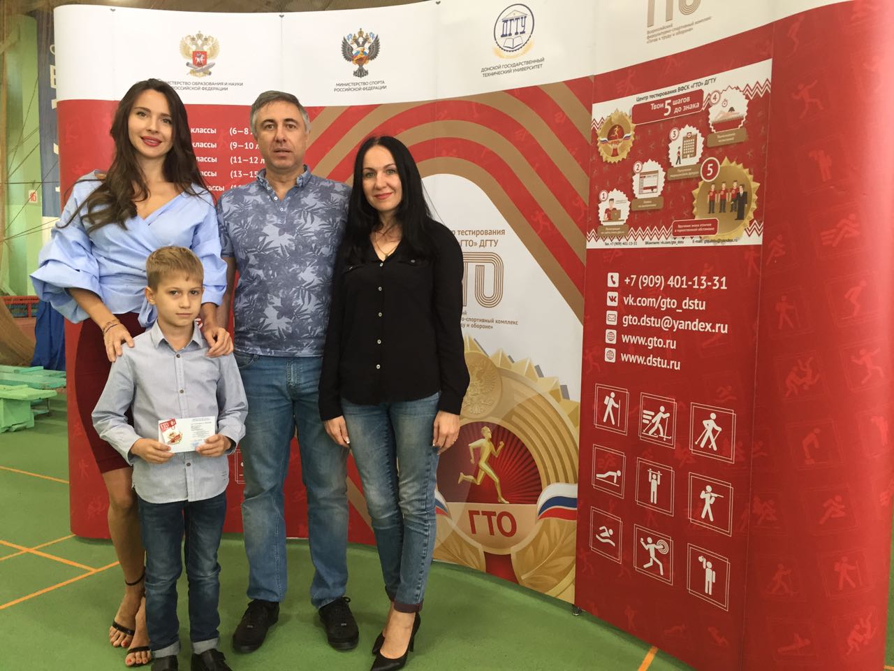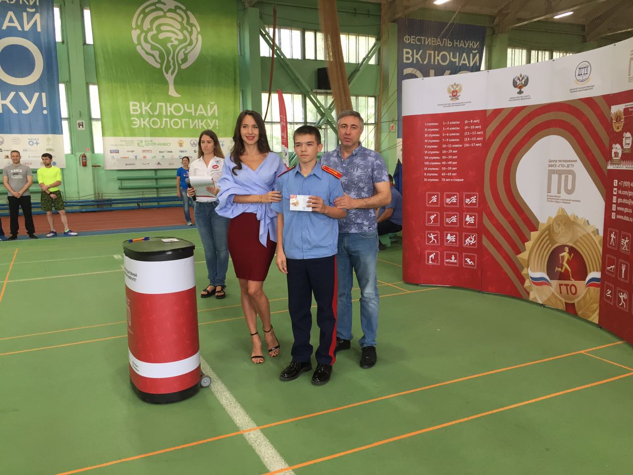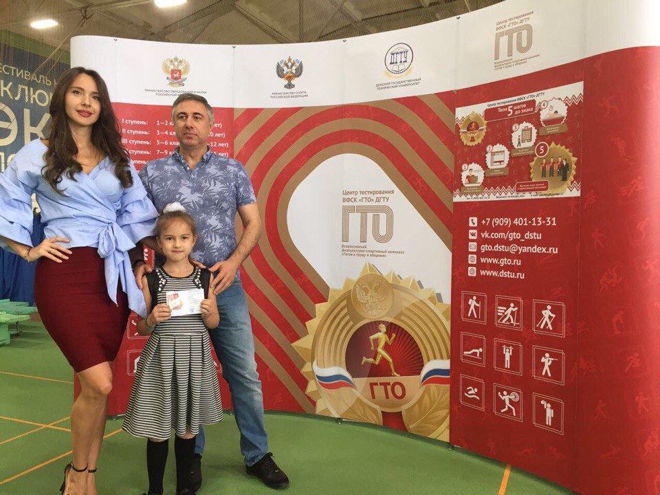 Почетные гости мероприятия - начальник управления развития студенческого спорта ДГТУ Смольянов Геннадий Иродионович и Миссис Планета 2015, Миссис Вселенная Россия 2017, официальное Лицо комплекса ГТО Ростовской области Матуа Людмила Сергеевна вручили знаки отличия комплекса ГТО самым юным участникам.